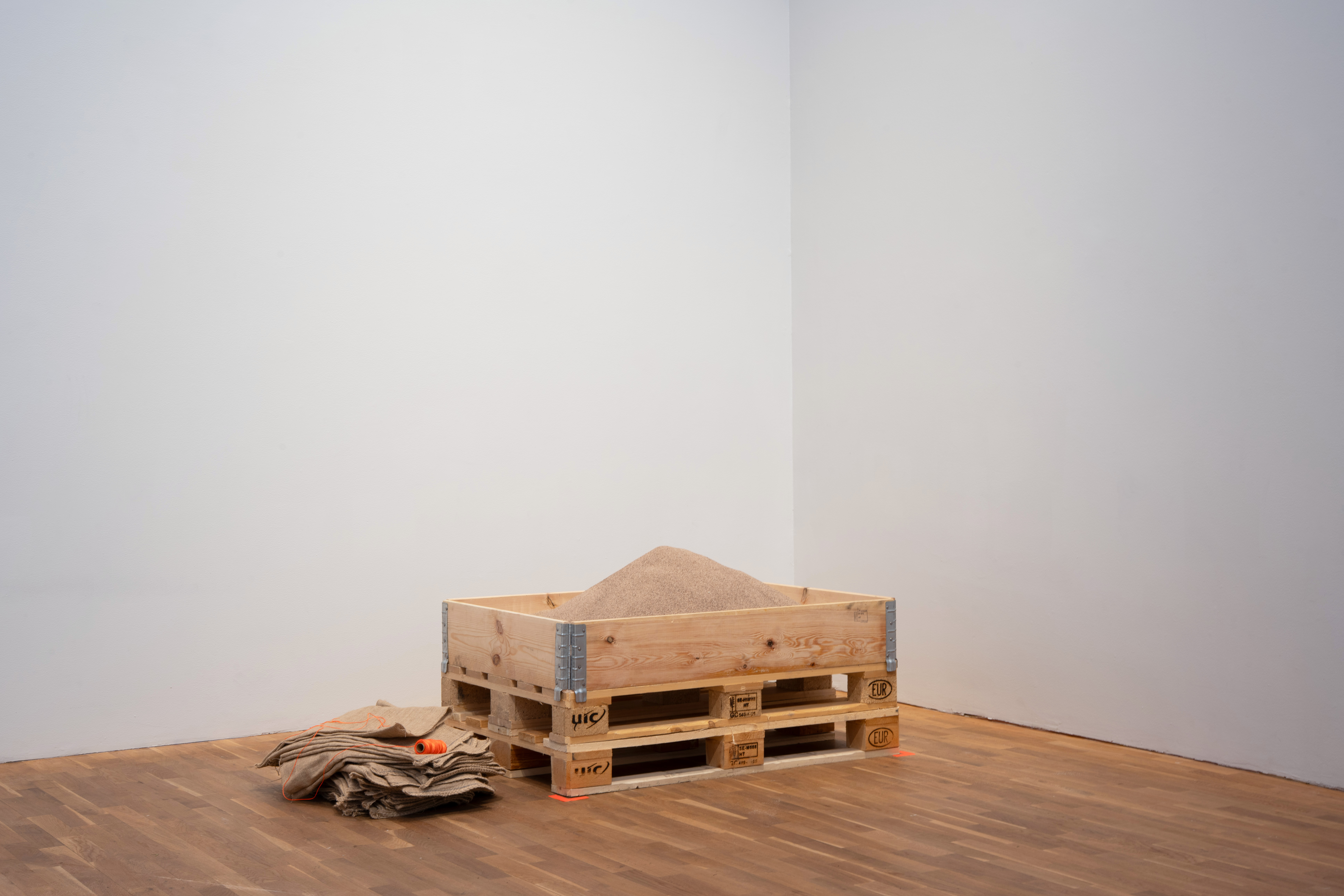 Anvisning: Jutesäckarna fylls med sand.