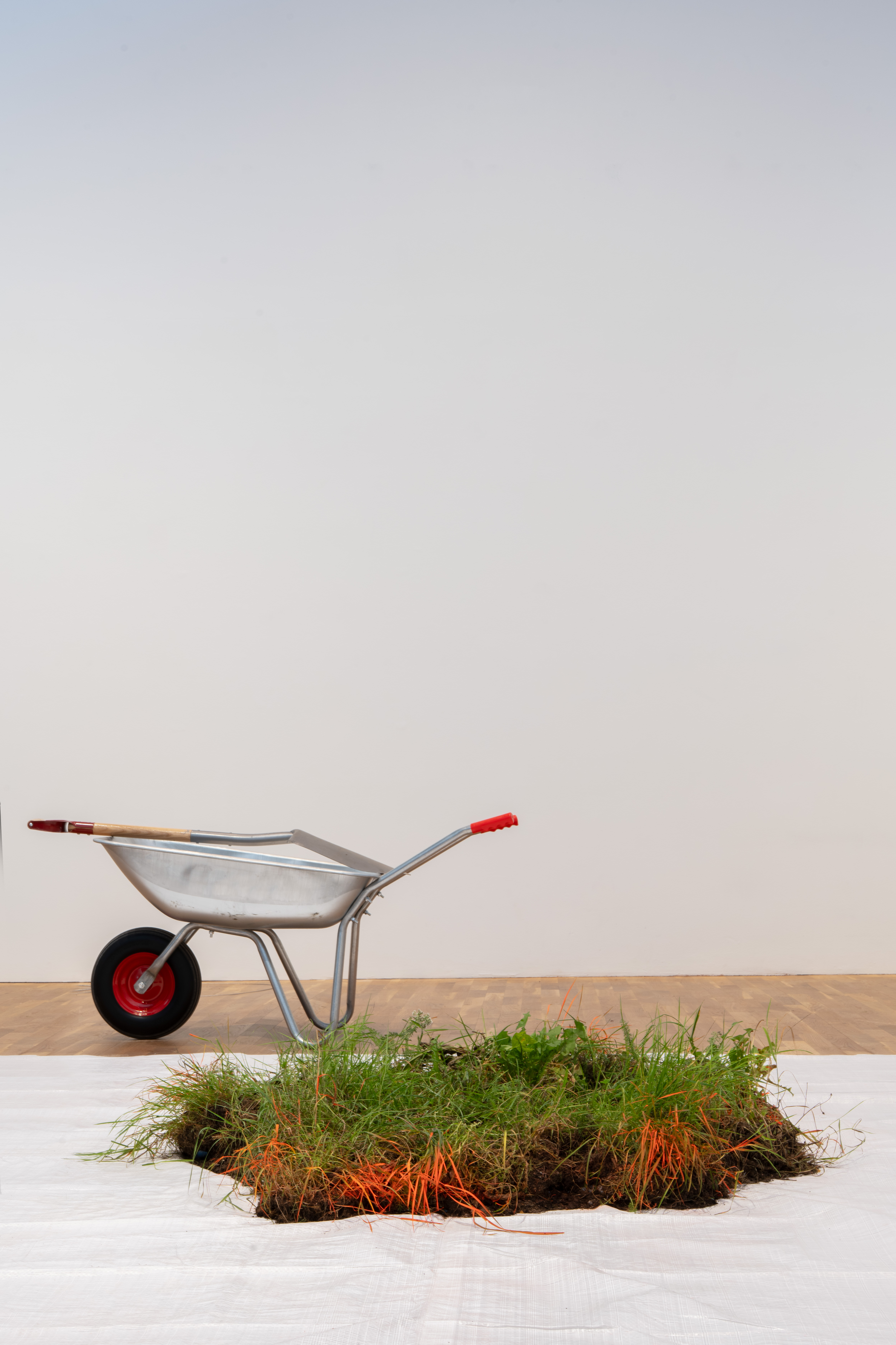 Ett stycke mark placeras på presenningen, centreras.