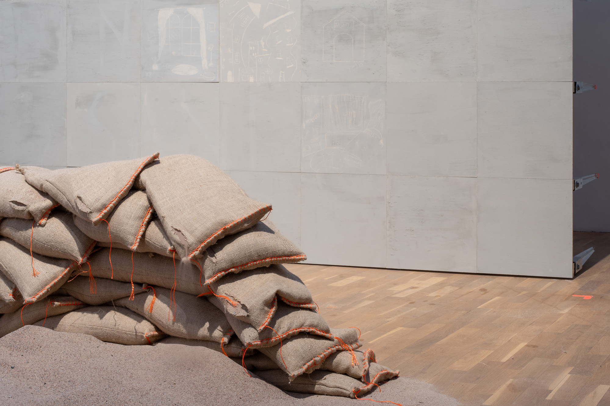Säckarna sprättas upp av konstnären.